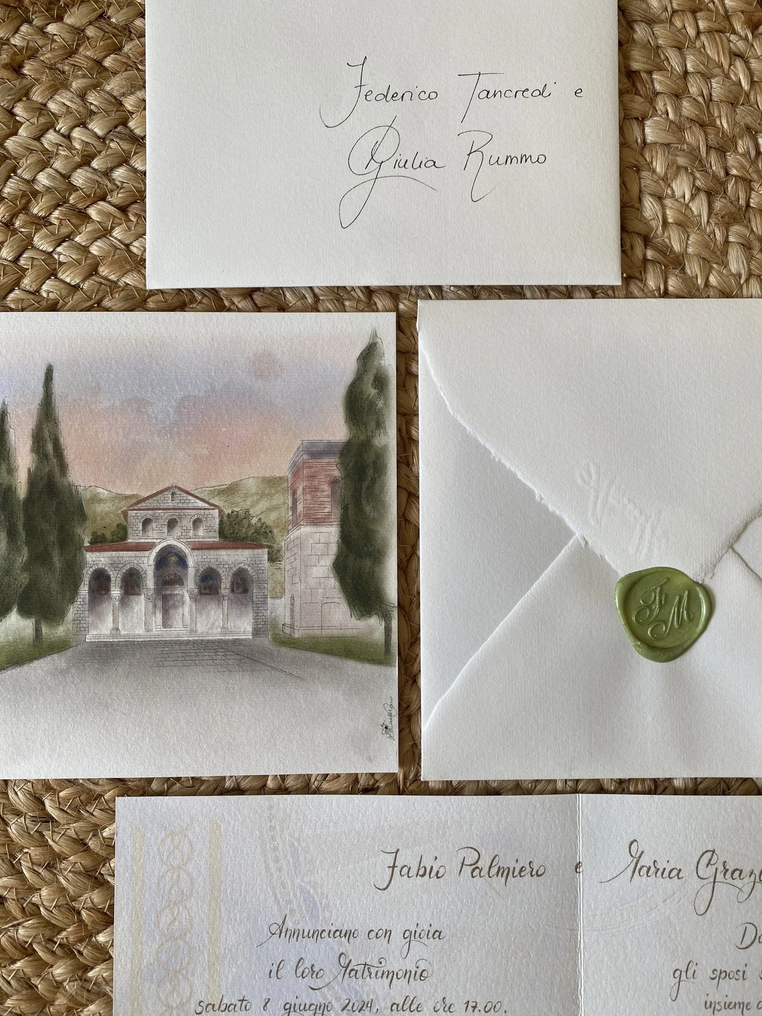 Un dipinto personalizzato per gli sposi che crea un coordinato che va dalle partecipazioni ai segnaposti, dai menu al tableau mariage, dalle immagini per il sito alle bomboniere. Tutto per un Matrimonio unico e personalizzato al 100%: ecco cosa si fa in casa Morgana Paper Design